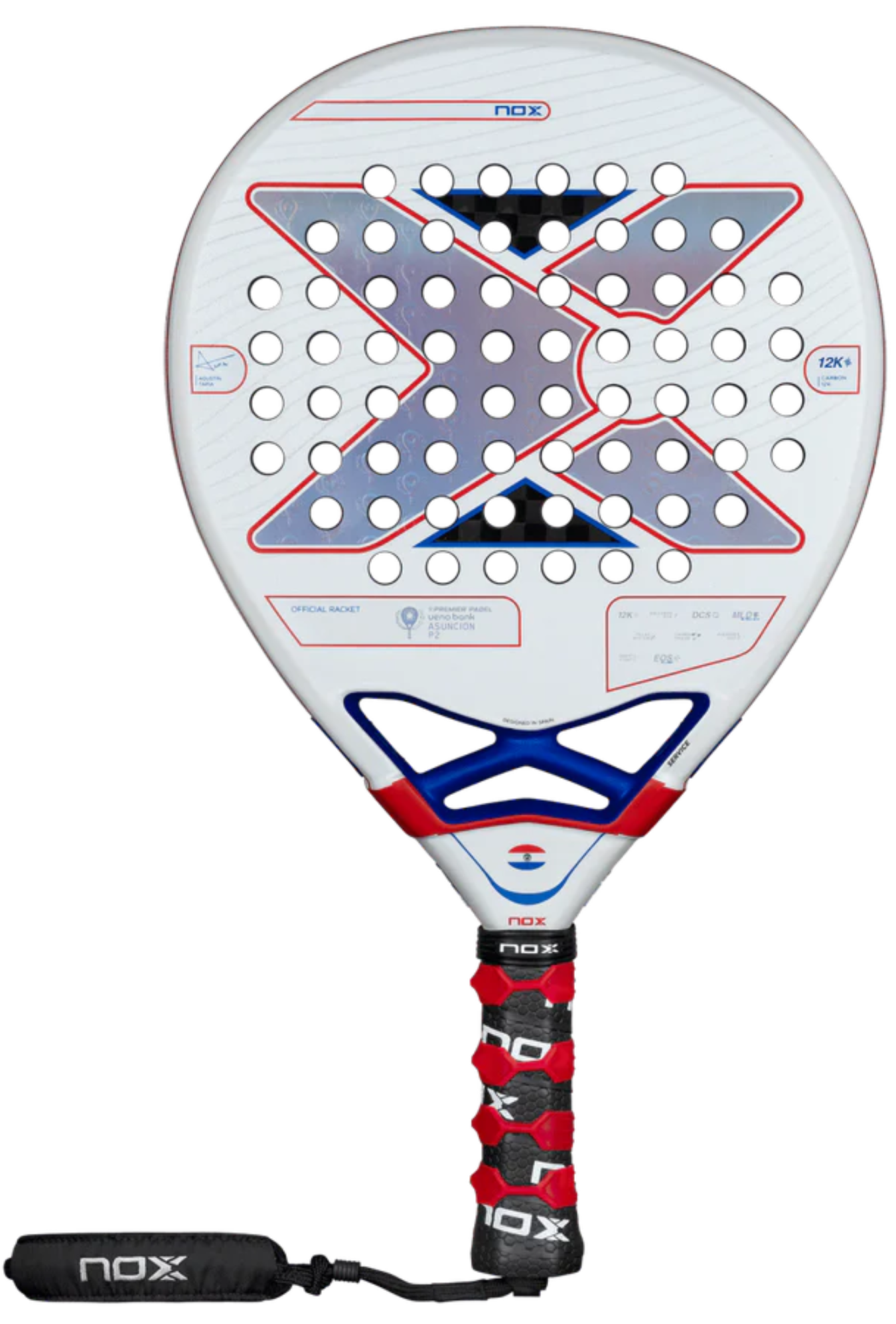 Celebra con Nox el vínculo con uno de los torneos más destacados del calendario internacional: el Asunción Premier Padel P2 2024. Por segundo año consecutivo, Nox es la Pala Oficial del torneo, y lo conmemoramos con una edición exclusiva de la mítica AT10 Genius 12K de Agustín Tapia, inspirada en los colores de la bandera paraguaya.